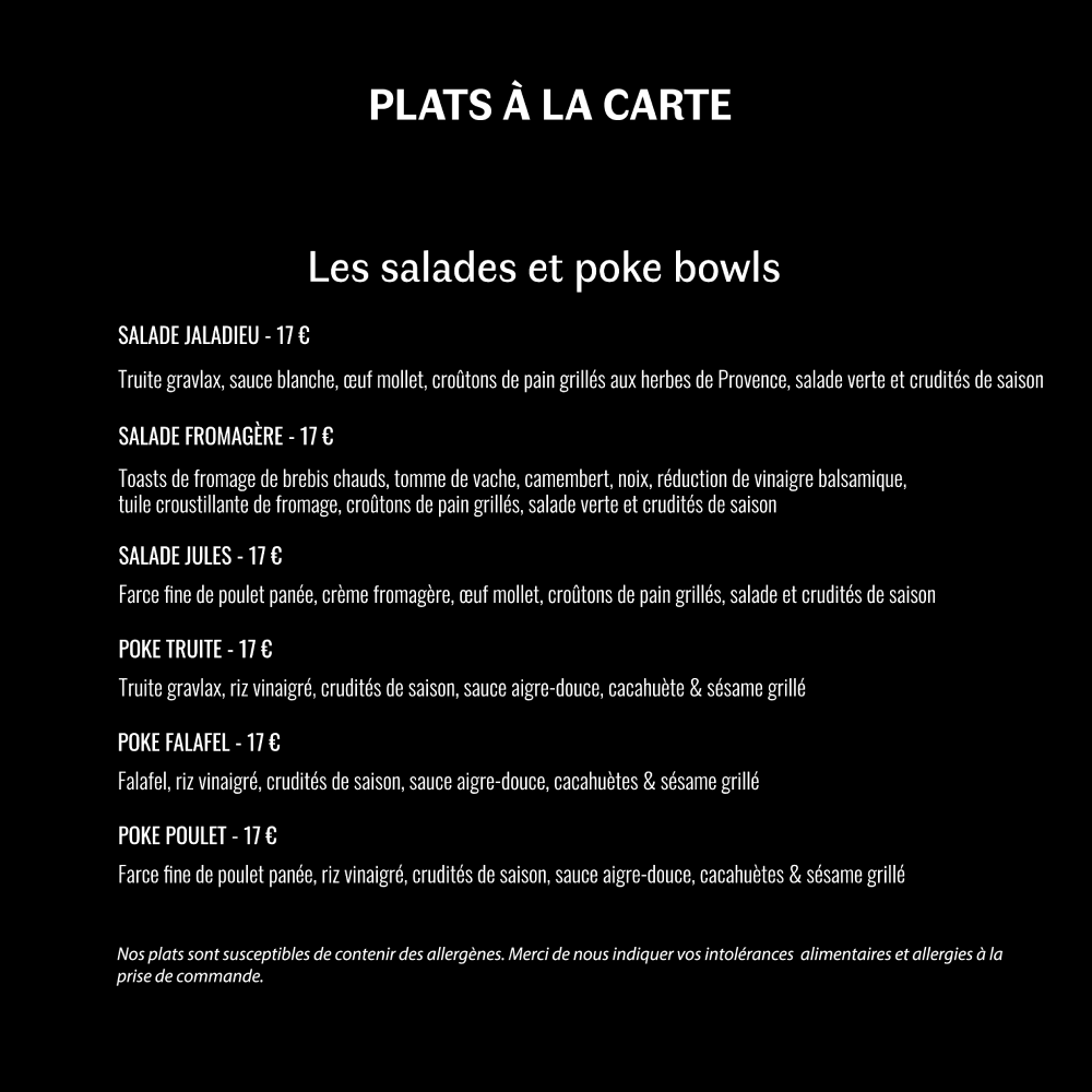 et plus bas tous nos plats à la carte, salades, poke bowls & burgers !